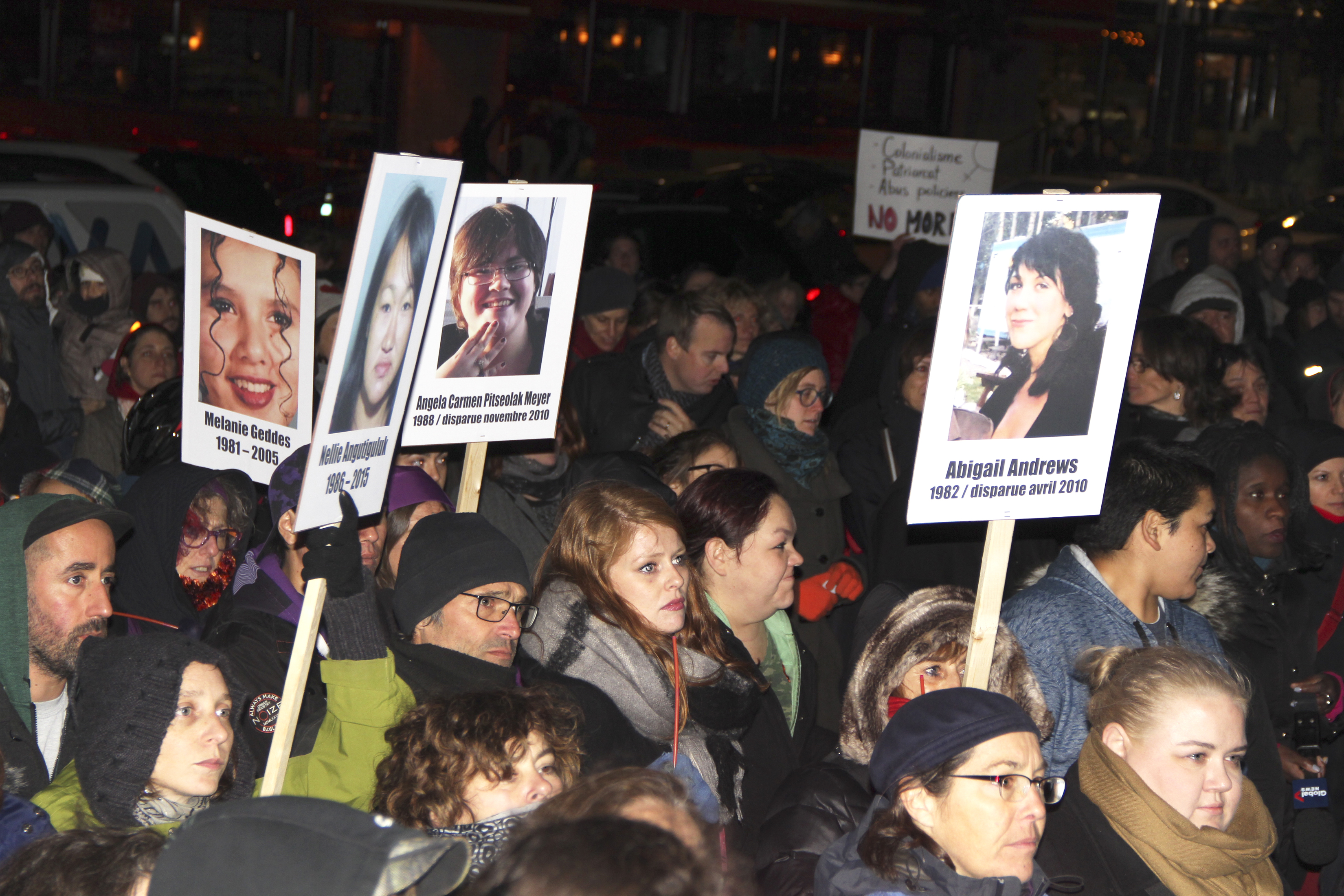 À l’arrivée ce qui frappe, ce sont les pancartes. Une vingtaine au bas mot. Sur chacune d’elles, le portrait d’une jeune femme sur fond blanc avec sa durée de vie, dont la fin coïncide souvent avec sa dernière apparition. S’y accrochant littéralement, les proches, les membres de la famille, les amis, les transportent dans leurs mains pour que les participants réalisent l’ampleur du drame, de leur détresse. Sensationnalisme ? Peut-être, en tout cas ça a l’avantage de briser l’apathie de l’écran, et ne laisse pas indifférent. Sauf que. À l’origine de l’agitation de ces dernières semaines, il n’y a ni pancarte ni vigile. Il y une vidéo : un reportage sur les violences faites aux femmes autochtones de la ville de Val‑d’Or (voir le Délit du 27 octobre). Une musique lyrique soutient la vidéo, comme pour bien indiquer l’émotion à prendre. Parce que les informations elles, n’ont jamais réussi à émouvoir, à concerner un public indifférent.