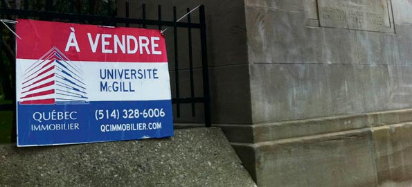 La semaine dernière, McGill a été mise en vente. Il s’agit d’une des actions symboliques lancées par l’Association pour une Solidarité Syndicale Étudiante (ASSÉ) pour amorcer les protestations visant à faire reculer le gouvernement Charest sur la hausse des frais de scolarité de 325 dollars par année et par étudiant. Les fédérations étudiantes universitaire et collégiale du Québec (FEUQ et FECQ) ont suivi de près avec notamment l’annonce d’une présence renforcée sur le web, au travers de la campagne 1625canepassepas.ca. Ces fédérations n’ont cependant pas osé emboîter le pas à l’ASSÉ quant à l’appel à une grève illimitée proposée pour le début de la session d’hiver.