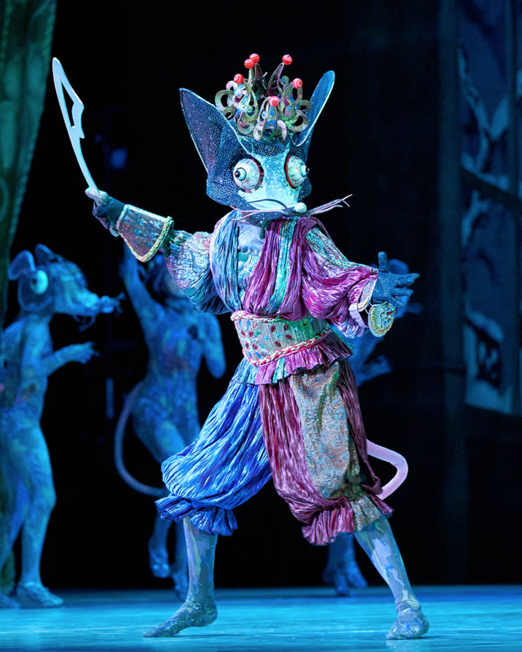 Les costumes, eux, ne sont pas en reste. Chaque tutu comporte une tonne de détails et de broderies. Les matériaux sont choisis avec soin, alliant textures et couleurs pour créer un effet saisissant. La Fée dragée, avec son tutu et sa longue cape orangée, donne véritablement l’impression de descendre du ciel lorsqu’elle arrive sur scène grâce au porté de son partenaire. Le costume du Roi des rats est également digne de mention, le morceau représentant la tête étant un chef-d’œuvre. Toutefois, c’est probablement le costume du roi Bonbon qui gagne la palme. L’immense tunique est absolument impressionnante avec ses multiples couches de tissu, sa couronne fournie et sa gigantesque canne de bonbon. Si les Grands Ballets Canadiens investissent près de 150 000 $ par année dans la réparation des costumes et des décors, le costume du roi Bonbon est certainement le plus exigeant parmi les 300 costumes de la production : à lui seul, il a une valeur de 10 000 $!