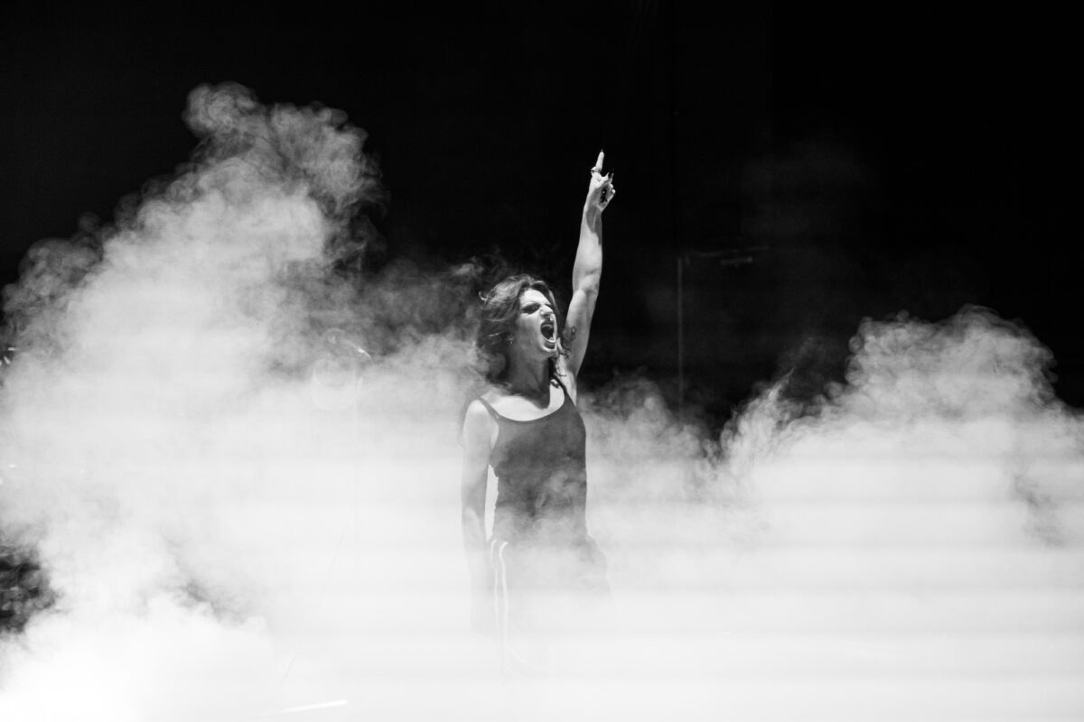 Je ne saurai jamais le nom de ma nouvelle amie. Peut-être qu’elle me l’a dit, mais je l’ai immédiatement oublié. Peu importe, le spectacle commence. Xénia s’avance sur scène, imposante, séductrice… dans un costume de homard ! J’apprendrai plus tard que ce dernier a été confectionné par une autre Xénia (Laffely). La performeuse est provocante et sexy (oui, oui, même en crustacé), puis elle retire son costume et commence à déclamer son texte. En plus de son personnage de homard, elle endosse parfois une personnification de la mort sous la forme d’un rappeur à la voix caverneuse. Seule sur scène pendant 1h30, elle chante, danse, se meut en bibitte désarticulée tout le long du dance floor puis redevient sexy d’un coup de bassin. Elle parle surtout de sa grand-mère et de ses grands-tantes, des femmes qui lui ont appris la féminité, mais qui ne l’auront jamais vue devenir une femme à son tour. Il est aussi question d’un paquet d’autres affaires : de transmisogynie, d’objectification, d’homophobie intériorisée, d’insécurité linguistique, de montréalocentrisme, de queerness en région, d’idéation suicidaire, d’amour, de deuil, de violence. Tour à tour, Xénia se montre douce, féroce, vulnérable, impitoyable. Son aplomb est à couper le souffle. C’est d’autant plus touchant de la voir toute humble, presque gênée lors de son salut final.