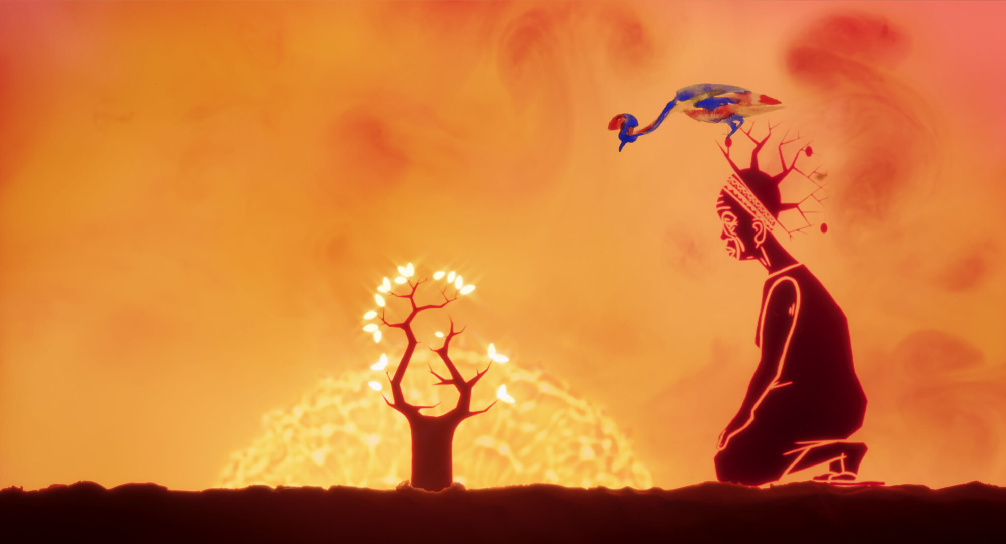 « Au bout de ton voyage, une lueur. Mille bons matins et un doux souvenir ». C’est sur ces mots que s’ouvre le film À nos futurs ancêtres. À l’écran, un soleil se lève. Au pied d’un gigantesque baobab se tient une petite fille. Dans les branches, un oiseau observe un instant l’œuf suspendu derrière lui, puis s’envole. Sous l’effet des premiers battements d’ailes, l’œuf se détache, chute lentement, frôle les mains de l’enfant, avant de se retourner sur lui-même et de disparaître dans l’immensité nébuleuse de l’espace. Le court-métrage de six minutes présente le parcours de la jeune fille en traversant le temps et la mémoire, de la savane au cosmos, en quête de cet œuf mystérieux qui lui révélera son avenir.