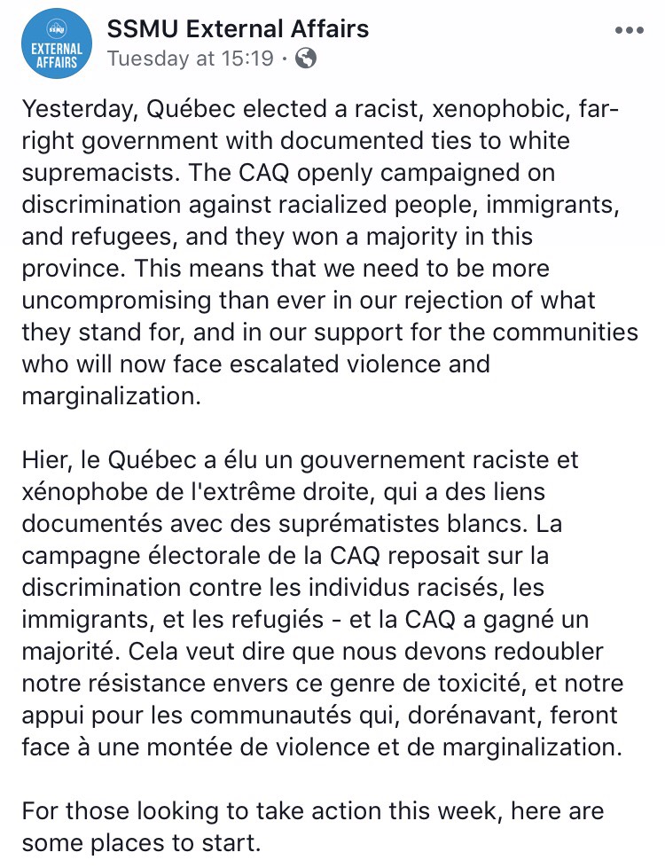 Une publication Facebook dépeint le parti comme appartenant à l’extrême-droite.